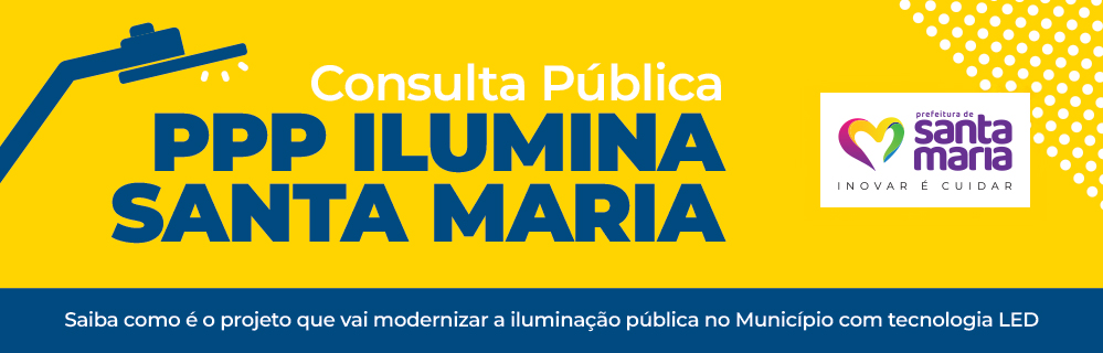 O processo para que Santa Maria tenha uma nova iluminação pública por meio de uma Parceria Público-Privada (PPP) avançou mais uma etapa com a abertura do período de consulta pública do projeto de concessão do Parque de Iluminação de Santa Maria. Os documentos referentes a este processo ficarão 30 dias disponíveis à população, de 18 de agosto a 16 de setembro, através do site da Prefeitura. Neste período, a comunidade poderá visualizar a documentação, bem como preencher um formulário com sugestões ou questionamentos.